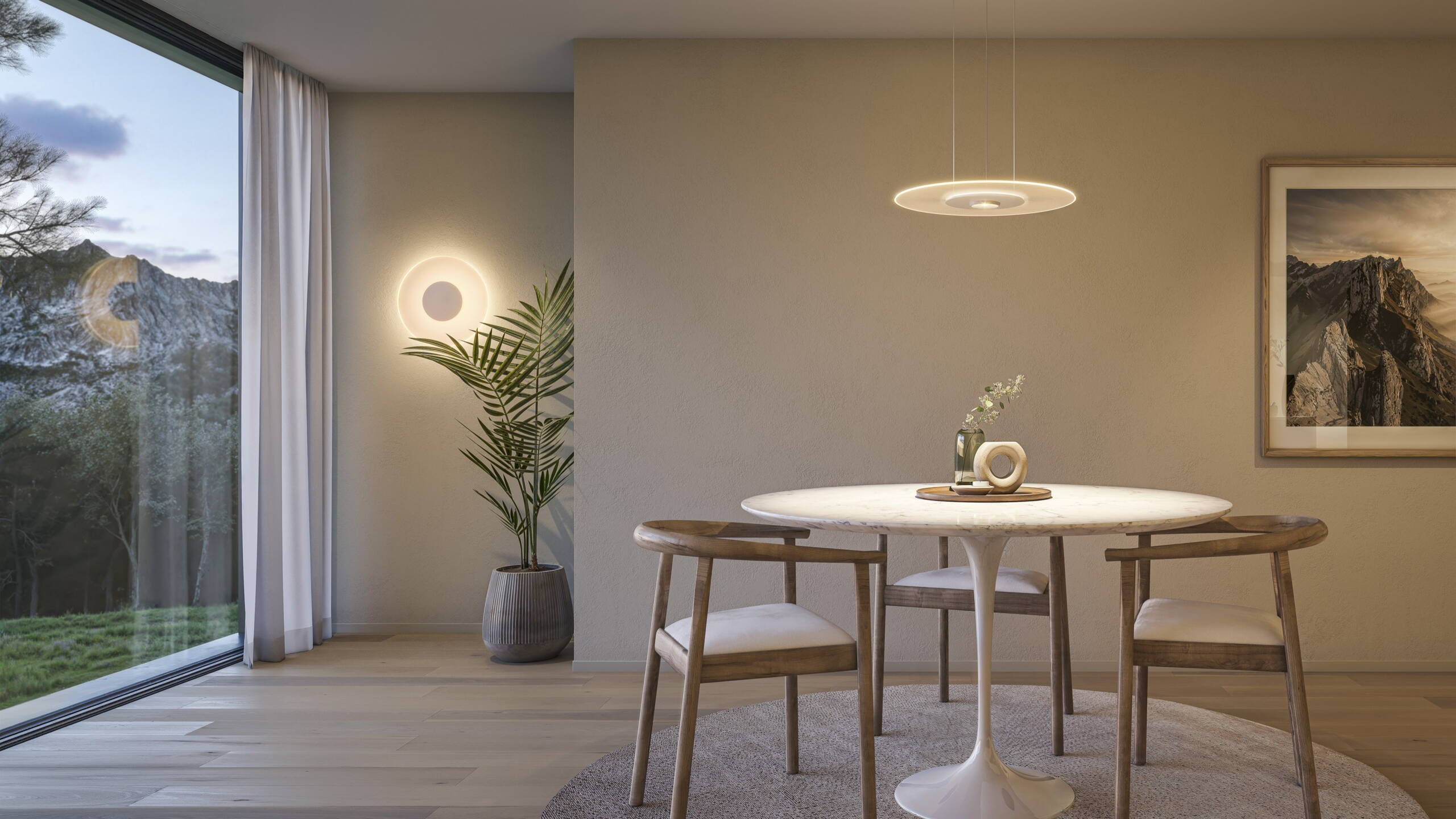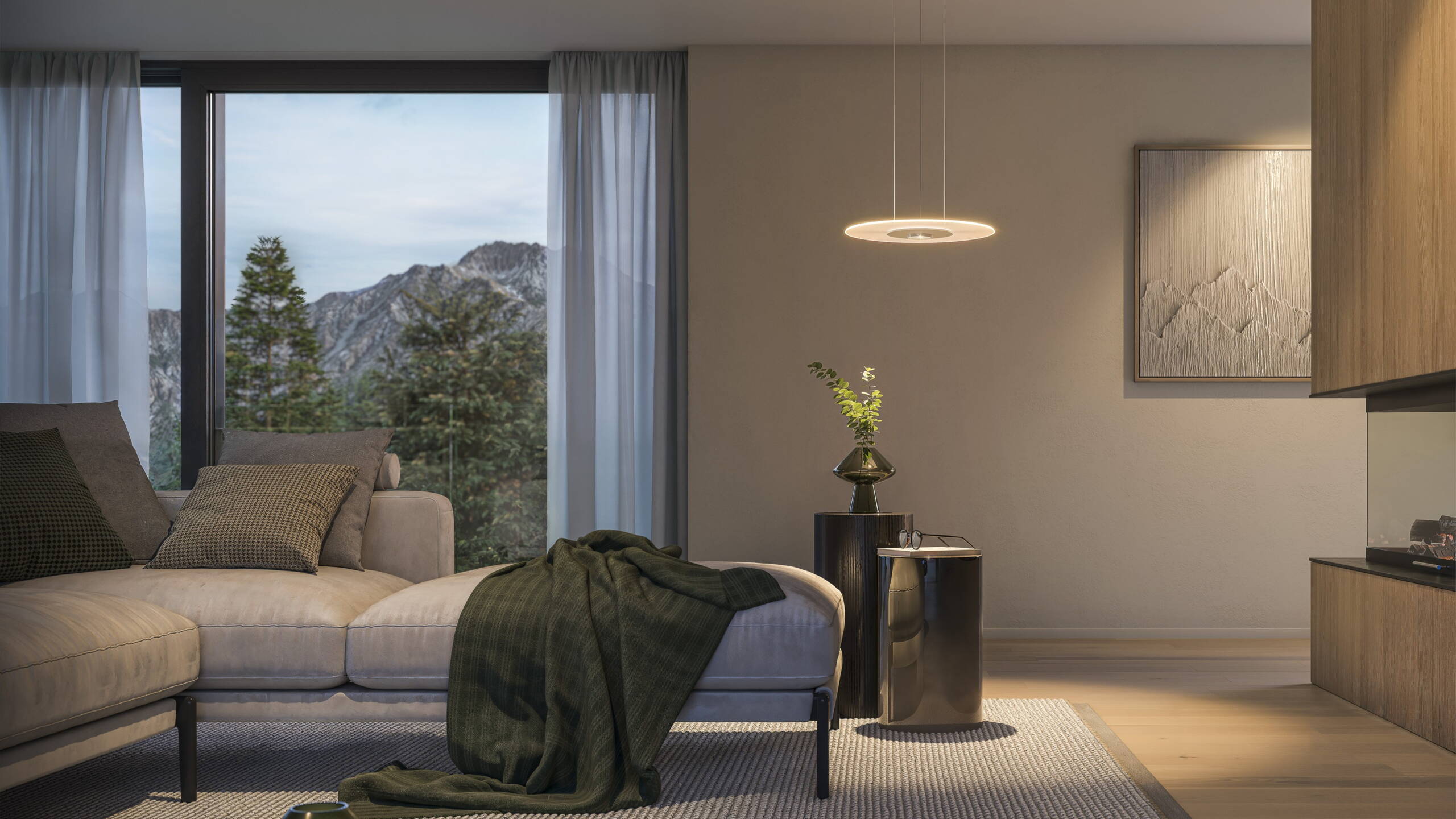 Variantenreiche Anpassung von Licht, Farben, Materialien und Stimmung